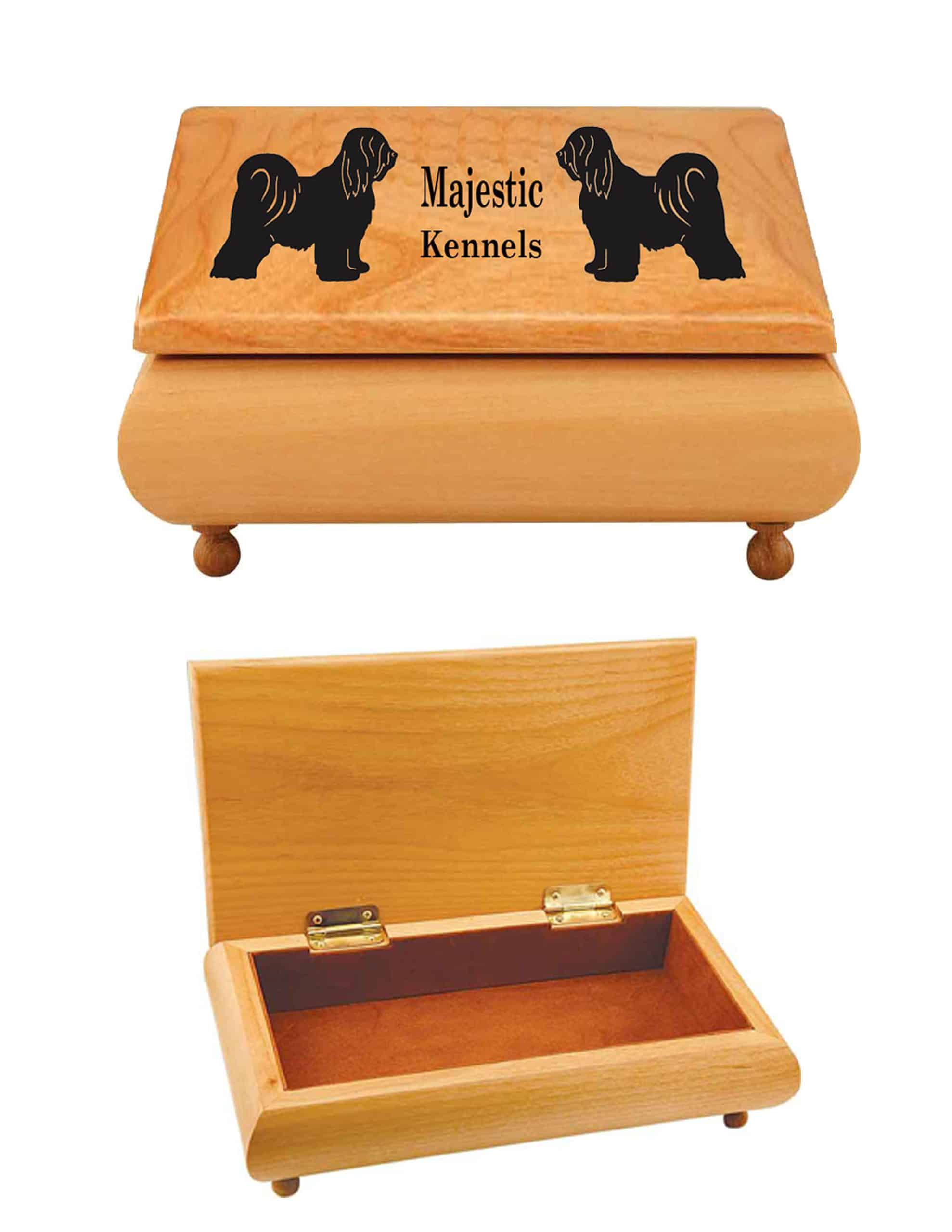 The Red Alder Wood Box is 10 1/2″ X 6″, has a rich brown velvet lining, is 3″s in height. Alder Boxes are ideal for holding your most memorable possessions. Top can be engraved with the artwork of choice ,