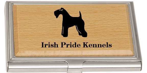 Wood Business Card Cases come with a chrome frame are 3 1/2′′ X 2 1/4′′. Wood case holds 12-15 cards, seals tightly. Is great for a pocket or purse. Can be customized with an image of choice and text. Keep in mind adding text reduces the size of the silhouette image. Adding text to this product will reduce the size of the silhouette.