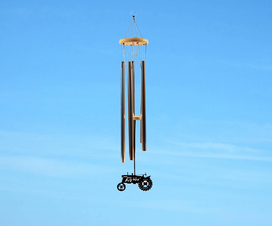 31′ long tubular bells includes 5 chimes and a 4″ black textured silhouette’s of choice. Makes a beautiful sound.