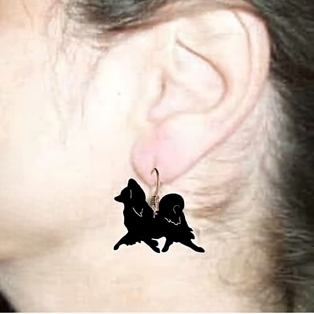 Silhouette Earrings are made out of 22ga stainless steel, the miniature black silhouettes are 1″ – 1½”. The silhouette image has a baked on powder coated finish. Which can be painted to add character to the image of choice if desired. Earrings come with sterling silver or gold filled findings.