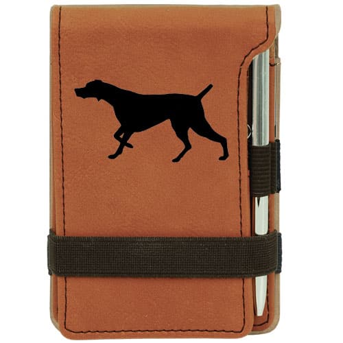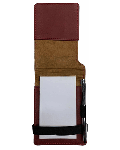 The Leatherette Pad & Pen Sets offer the look & feel of leather, the rich textured weather resistant synthetic material comes in a variety of vibrant colors. Overall measurements: 4 3/4” X 3 1/4”, holds a 2 ¾” X 4 1/8” note pad. Artist will place the image of choice so it best fits on the Pad & Paper Set. Image faces left. The Pen & Pen Sets arrive nicely packaged in a small black box. Text if chosen will appear in upper & lower case.