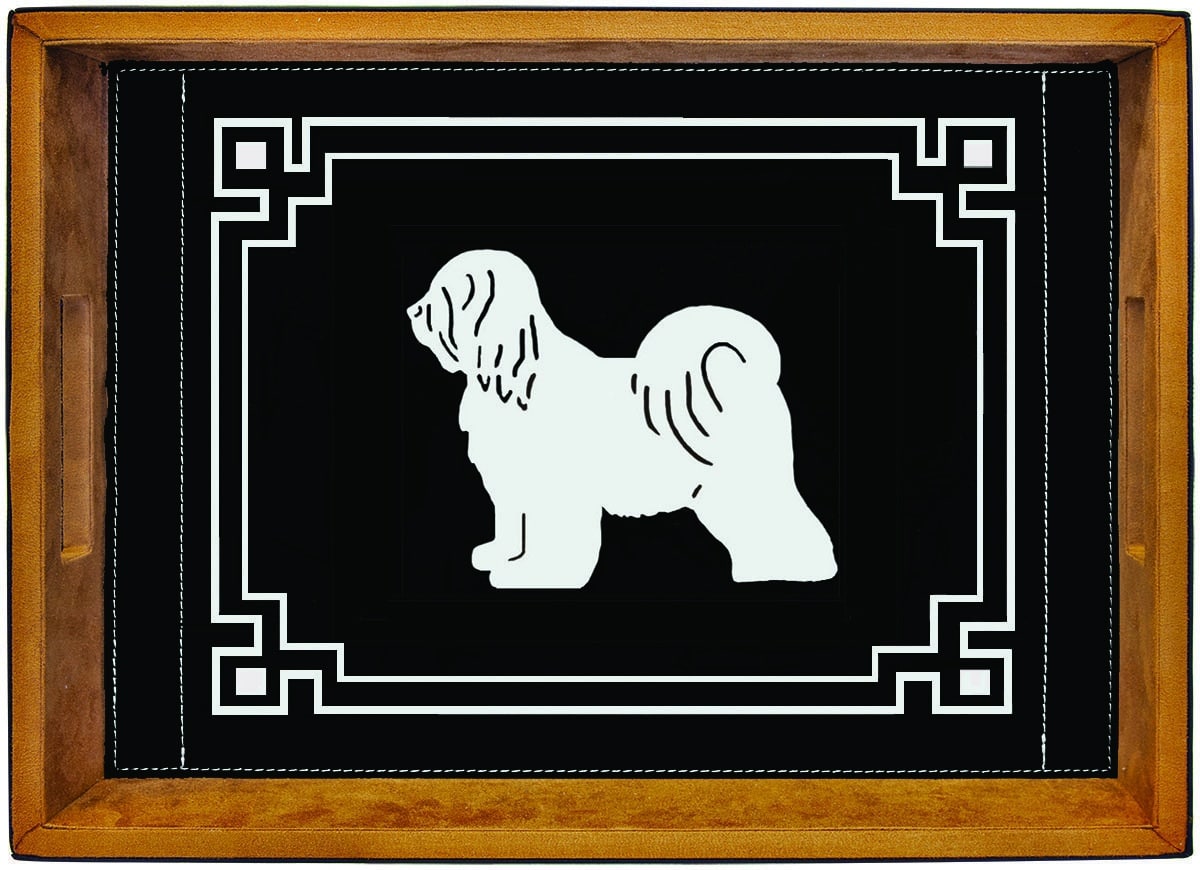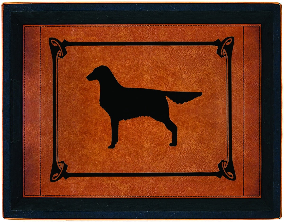 The Leatherette Serving Tray offers the look & feel of leather, the rich textured weather resistant synthetic material comes in several of colors. The inside and bottom of serving tray have a suede like finish, the rectangular tray is 2 3/8” deep. Overall size of Tray 16” X 12” Choose from Art Deco Border or Native American theme, color choice & image.